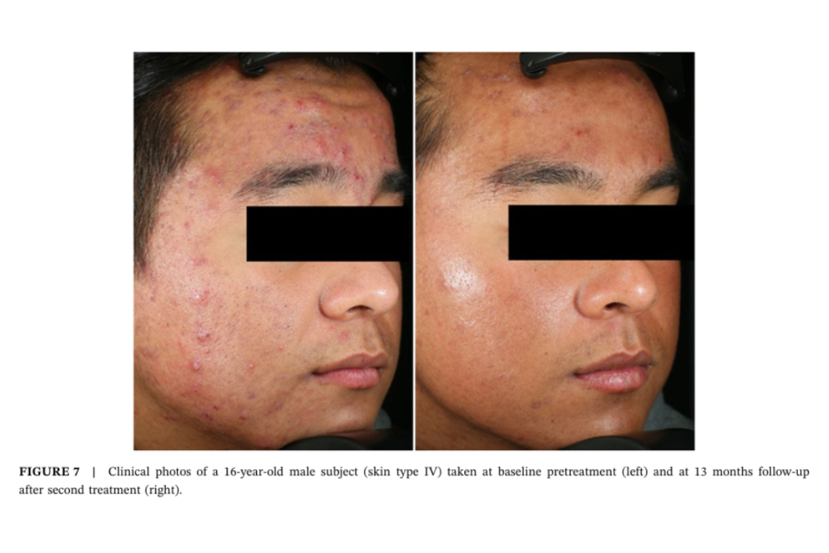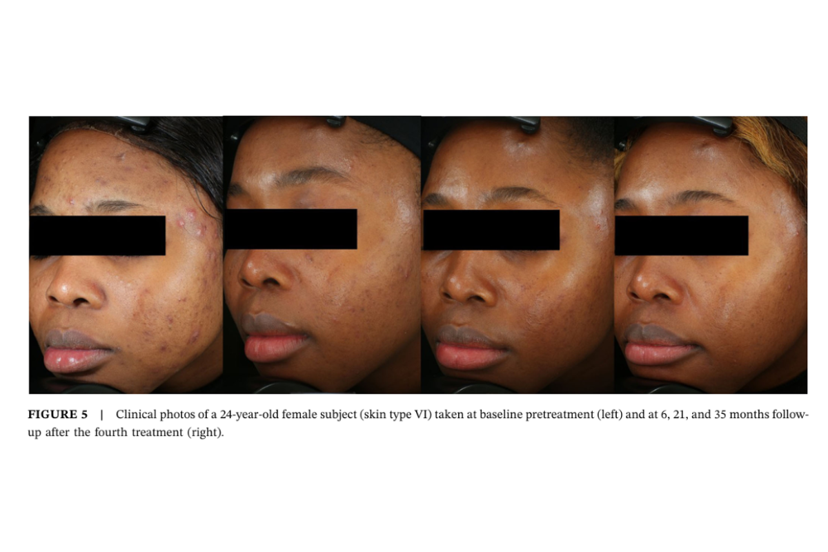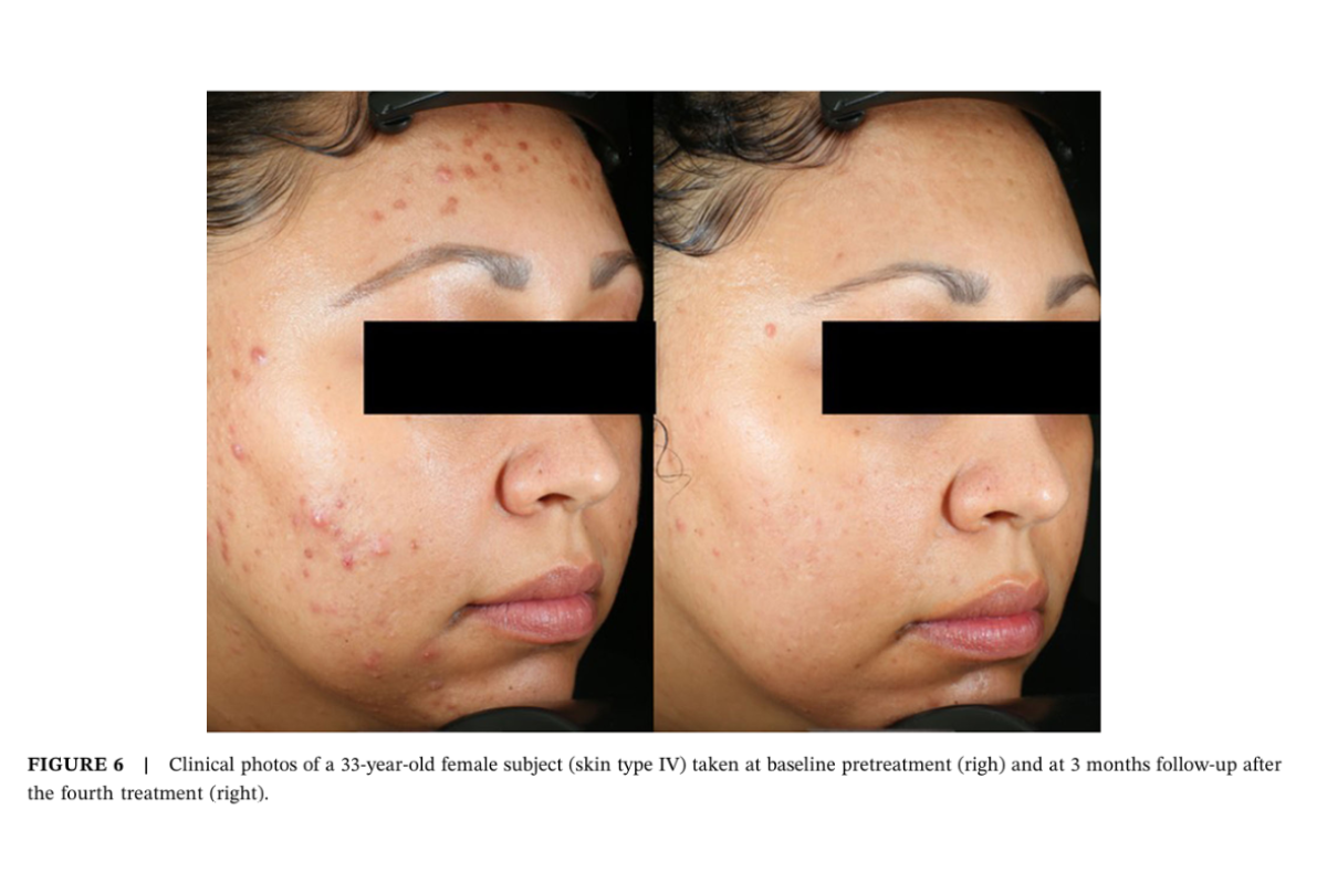 Studies showed an 80% reduction in acne lesions after 4 treatments and sustaining results over time.