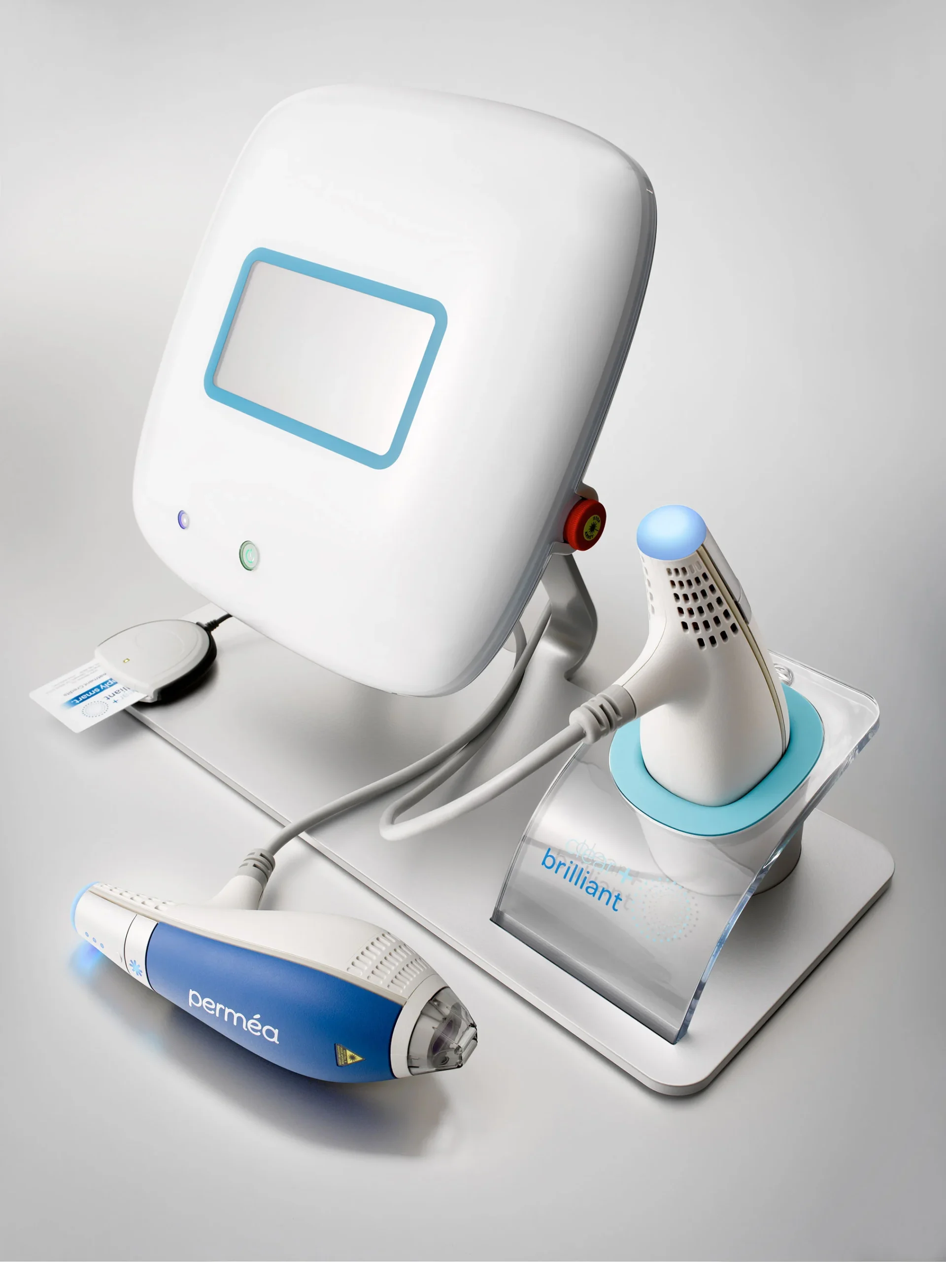 Clear + Brilliant / Clear + Perméa improve unwanted signs of aging and give you the power to help prevent them. It is a gentle laser that refreshes your skin from inside out. The laser energy creates millions of microscopic treatment zones in your skin, replacing damaged skin with healthy, younger looking tissue.