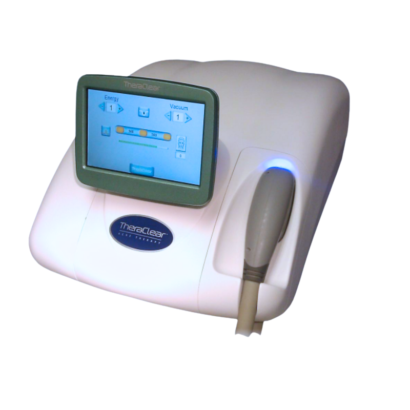 TheraClear Acne System combines light and vacuum for a fast and visible reduction in acne and associated redness. TheraClear Acne Surgery Insert treats some of the severest forms of acne in just a single treatment. The TheraClear Acne System is a state of the art acne treatment device which addresses multiple causes of acne in a single treatment and the only continuously cooled device FDA cleared for the treatment of multiple acne indications on all skin types.