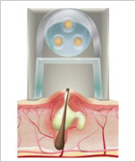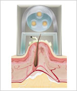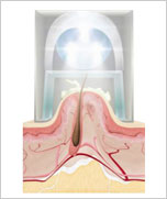 The combination of light and vacuum removes the sebum from the pilosebaceous acne and thereby removes the cause of the acne lesion.